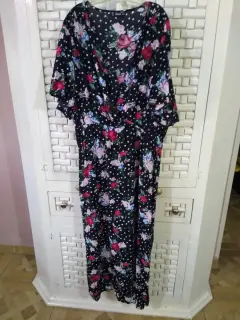 Vestido Nuevo Shein Talla 4XL. Vestido Nuevo Talla 4 XL Shein Tela Fresca de Rayón Negro con Lunares y Estampado Floral Manga Corta Largo