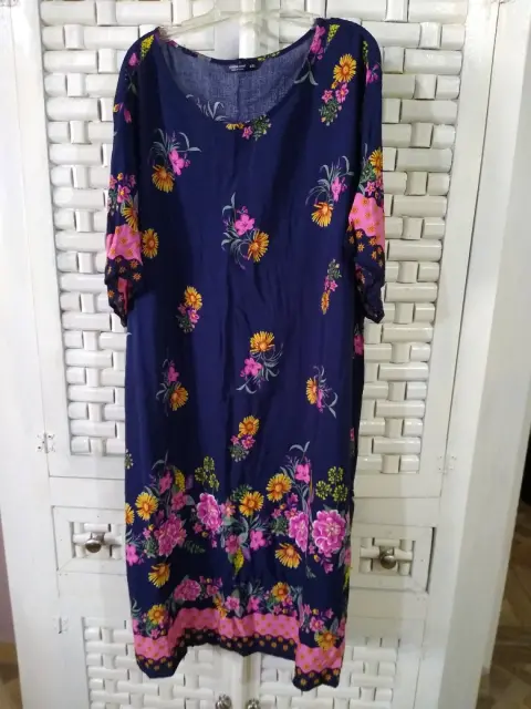 Vestido Nuevo Shein Talla 4XL. Vestido Nuevo Shein Talla 4XL Azul Marino Estampado Floral de Manga Corta 100 por ciento Rayón