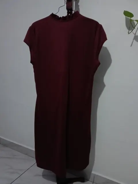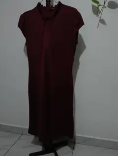Vestido oficina. Vestido color vino mangas cortas y cuello redondo, queda arriba de la rodilla, súper cómodo
