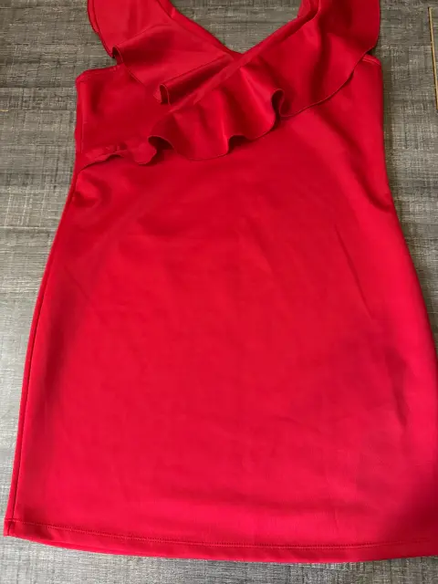 Vestido Rojo. Vestido rojo XL, con Olán cruzado sin mangas, suave, muy ligero, ideal para una fiesta Axila a axila 50 cm Largo 89 cm