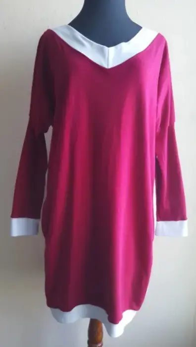 Vestido rojo calentito. Vestido en tono rojo cereza y blanco Con bolsas a los costados Recomiendo a talla M Excelente estado