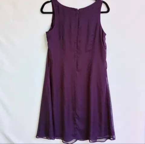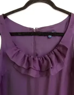 Vestido sin mangas GAP. Vestido sin mangas GAP Sin mangas, forrado al 100%, suelto, con volantes en el escote. Color morado, el color real es el de la última imagen. Talla 10 Medidas tomadas por un solo lado: *Axila-Axila 47 cm *Largo 93 cm