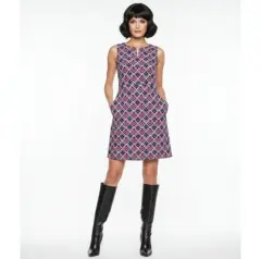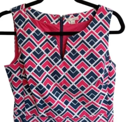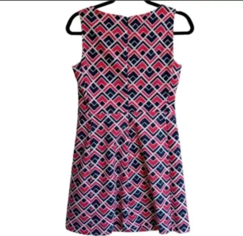 Vestido sin mangas GAP Talla 2 Vestido entallado con falda en A, estampado geométrico Marcy Dobby, cierre oculto en la espalda, totalmente forrado. Medidas tomadas por un solo lado: *Axila-Axila 42 cm *Cintura 36 cm *Largo 85 cm ⚜️ Por favor si vas a ofertar que sea solo porque tú compra será segura ⚜️
