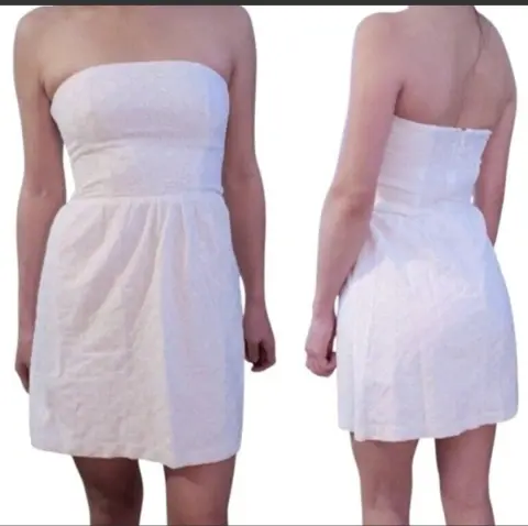 Vestido strapless blanco GAP. Vestido strapless blanco GAP, muy romántico y femenino Talla 6 Características: -Cierre lateral invisible -Tiene bolsas -Tiene forro -Cinta antiadherente por dentro para que no se te baje Medidas tomadas por un solo lado: -Largo 72 CM -Axila-axila 37 CM -Cintura 35 CM ⚜️ Por favor si vas a ofertar que sea solo porque tú compra será segura ⚜️