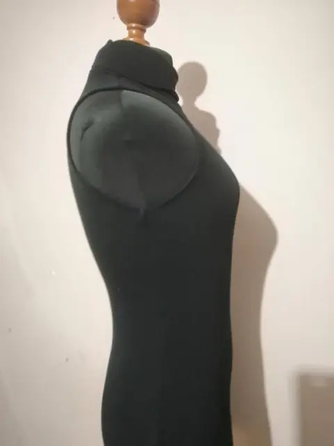 Vestido talla mediana el cuello puede usarse a la mitad o desdoblado Da a una 30-34 mx aprox largo mide 87 CM desde el.hombro