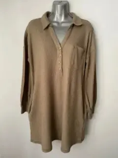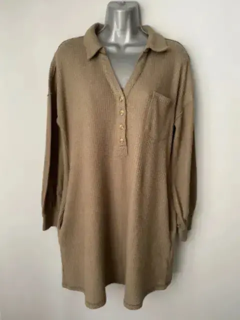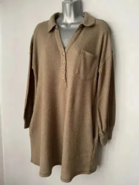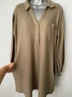 Hermoso vestido verde olivo, tiene bolsas en los costadosMedidas aproximadas:De axila a axila 63 cm Largo 82 cm