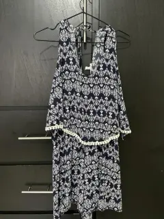 Vestido/Romper Moon Kiss. Marca: Moon Kiss (Calidad de boutique).• Corte: Halter ajustable al cuello (tú decides qué tan escotado lo quieres) y un diseño de "capa" que favorece muchísimo la silueta.• Talla: Mediana (M), queda perfecto gracias a su caída fluida.
