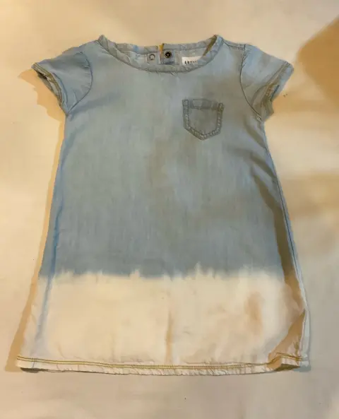 Dúo de vestidos para niña, el gris es tela de pana y el azul con blanco es tele delgada y fresca