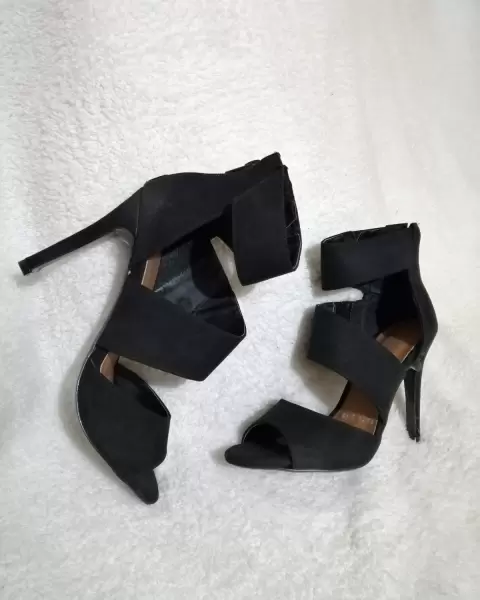 4 Zapatillas tiras gamuza negra. Hermosa zapatilla color Negra textura suave de gamuza con cierre detrás, diseño tiras cruzadas, altura suela tacón de 10cm. México Número #24cm. Pregúntame o visita mi closet para más modelos y númeración. En tu primer compra dentro de la app se te descuenta -$100 usa mi código Promocional.