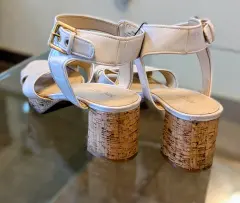 Hermosos zapatos tacón cómodo. Zapatillas Nine West #6 , tacón medio, color hueso.