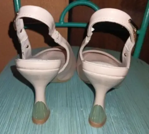 Hola! Pongo a la venta estas hermosas zapatillas color nude con detalle de cadena dorada. Son súper elegantes y modernas por la forma del tacón. tienen un pequeño raspón en la punta de abajo (casi imperceptible al traerlos puestos) y el desgaste natural de la suela por el único uso que tuvieron. Su comodidad es estable, la marca es de Yaeli fahion