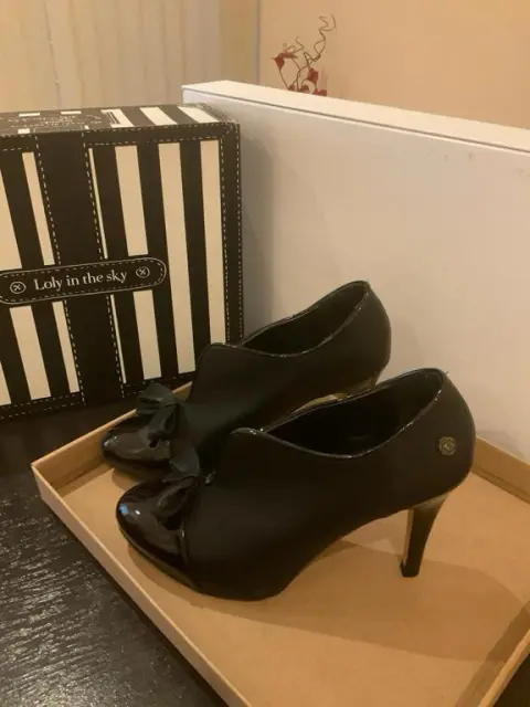 Tacones con magia y mucho glamour! Perfectos para que tu outfit luzca increíble. Preciosos zapatos negros semi nuevos . Talla 5