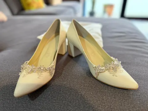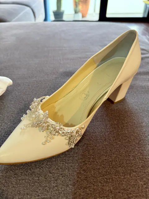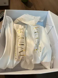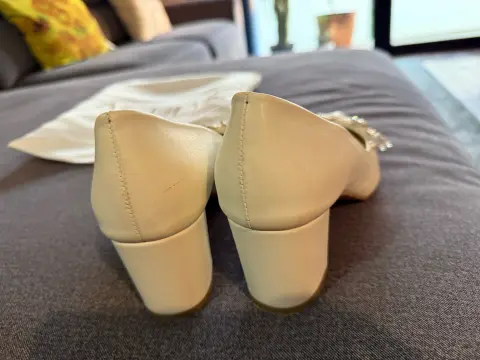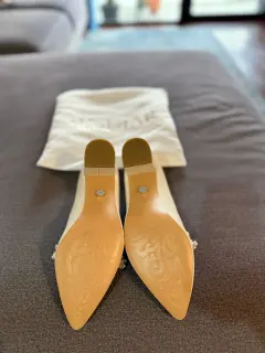 Zapatillas usadas solo una vez por unas horas. Muy cómodas y prácticamente nuevas. Vienen en una caja muy bonita con una bolsita para cada zapato.