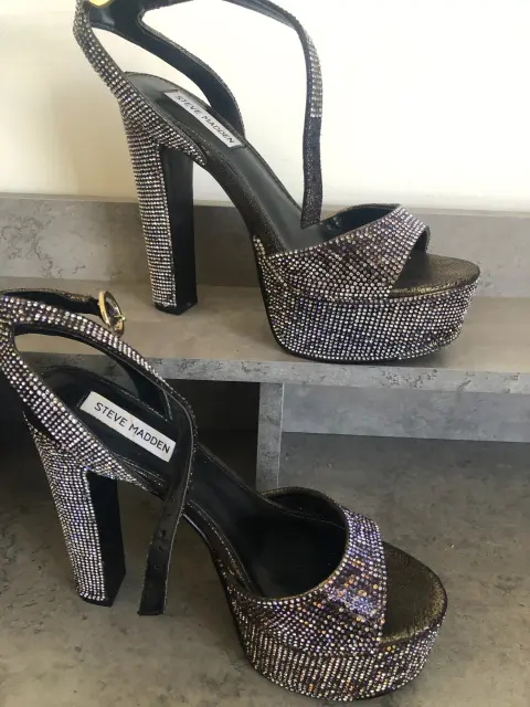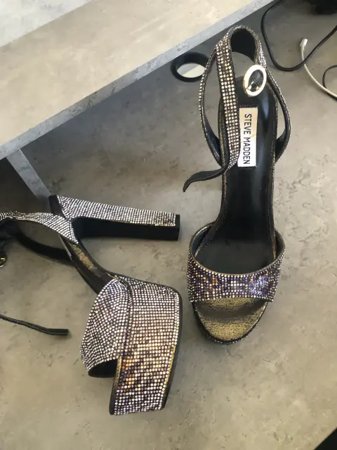 Zapatillas brillosas. Steve madden brillosas #5.5mx plataforma 4.5cm altura 15 cm entregó sin caja original, una puesta.
