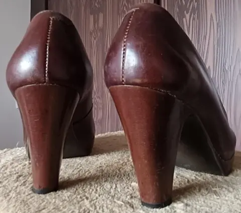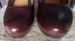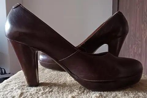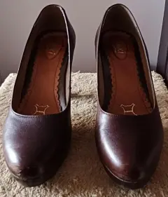 Zapatillas cómodas en color café. Marca Flexi. Altura del tacón: 8 cm. Hecho en México. Corte: vacuno. Suela y forro: sintéticos. Con ligero detalle en la punta que se muestra en la foto.
