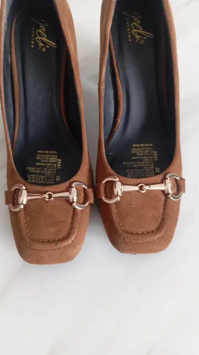 Zapatillas cuadradas café. Zapatillas punta cuadrada con detalle metálico, tacón de 8cm, muy cómodas. Solo una puesta. Marca Yaeli Fashion, talla 23. Precio $200