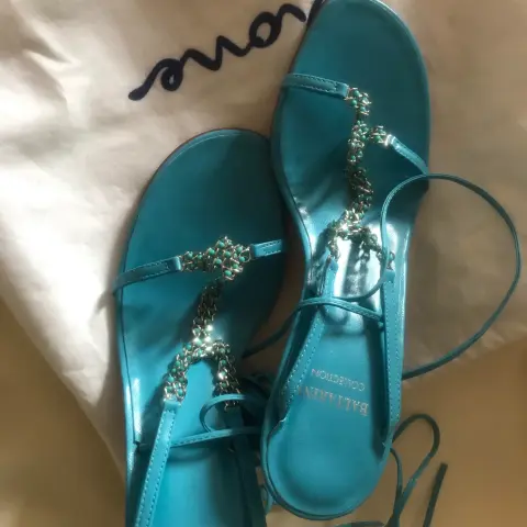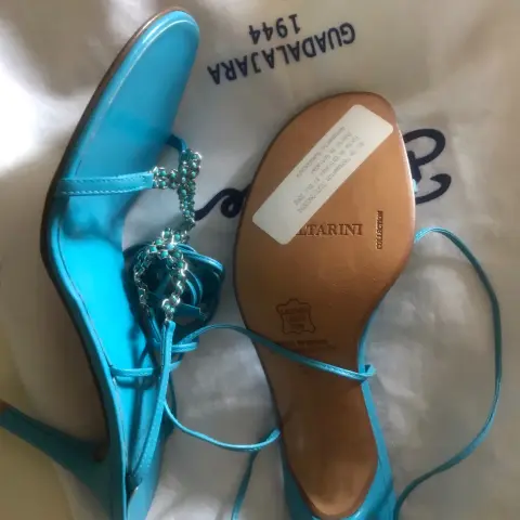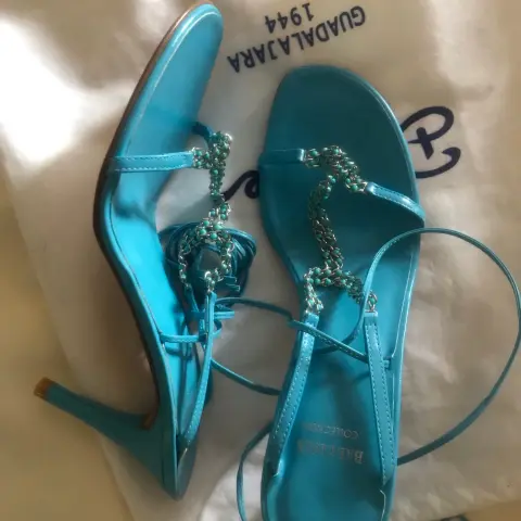 Zapatillas de fiesta. Zapatillas de fiesta en un hermoso azul turquesa del número 4 con detalles de pedrería