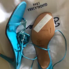 Zapatillas de fiesta en un hermoso azul turquesa del número 4 con detalles de pedrería
