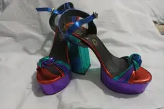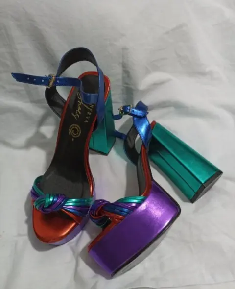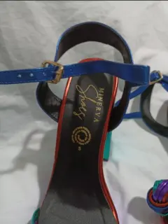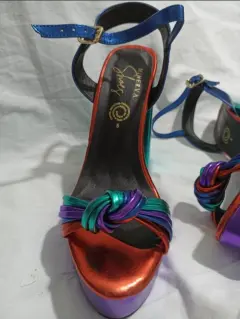 Zapatillas hippie. Zapatillas de plataforma abiertas, multicolor, muy cómodas por su plataforma, talla 5, tacón de 12 cm.