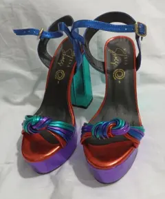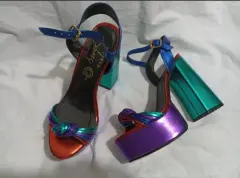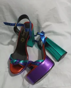 Zapatillas de plataforma abiertas, multicolor, muy cómodas por su plataforma, talla 5, tacón de 12 cm.
