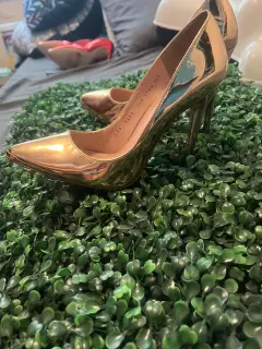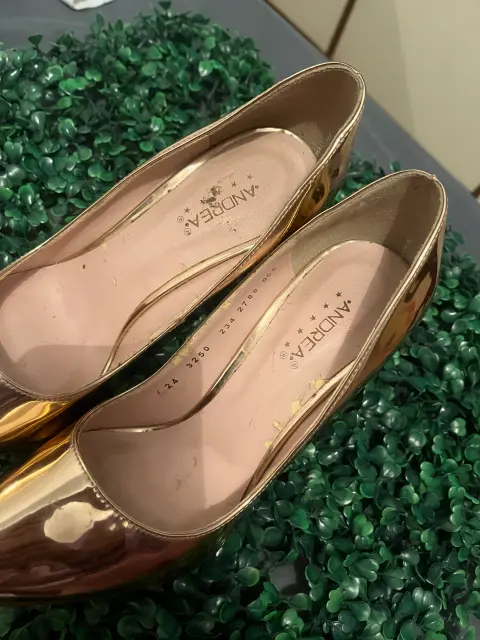 Zapatillas metálicas 🤍. Zapatillas de punta metálicas talla 4 en color dorado , súper lindas tienen detalles de uso pero por dentro, por fuera se encuentran en buen estado no afecta su estica👠 aún tienen bastante tiempo de vida 💛