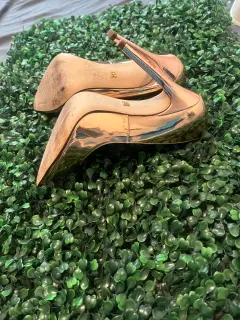 Zapatillas de punta metálicas talla 4 en color dorado , súper lindas tienen detalles de uso pero por dentro, por fuera se encuentran en buen estado no afecta su estica👠 aún tienen bastante tiempo de vida 💛