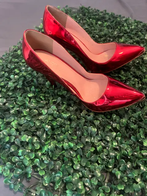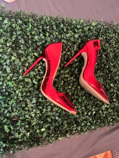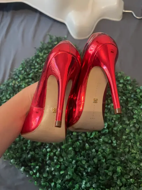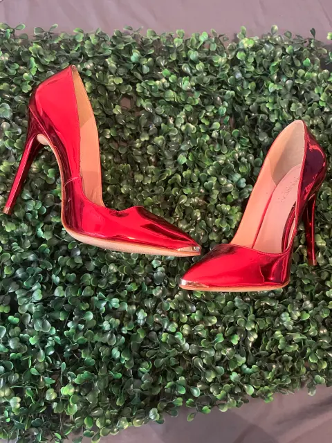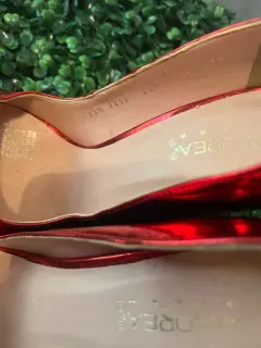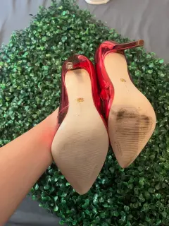 Zapatillas metálicas talla 3 1/2 en color rojo, con punta 👠 están muy lindas y en muy buen estado con detalles muy mínimos de uso solo se usaron 2 veces