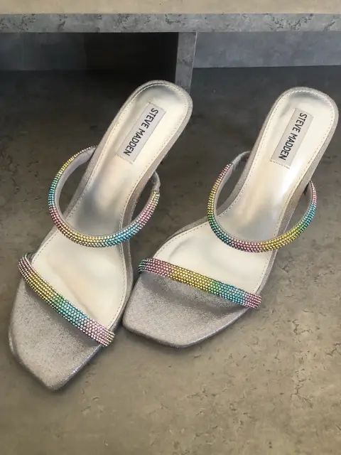 Zapatillas Steve madden. Steve madden zapatillas brillosas de colores #5.5 mx tacón 8cm, entregó sin caja original solo una puesta