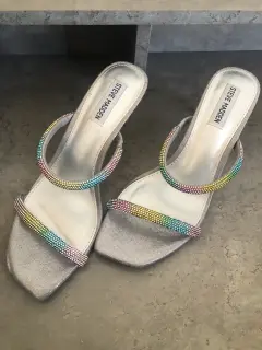 Steve madden zapatillas brillosas de colores #5.5 mx tacón 8cm, entregó sin caja original solo una puesta