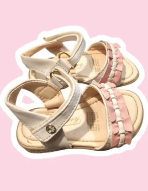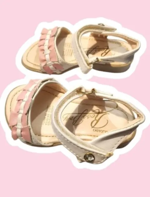 Ross Bry Huarachito Casual para bebe. Ross Bry Huarachito Casual para bebe, talla 12, colores blanco y rosa, detalle de monitor Rosas, cierre de velcro adjustable, plantilla acolchada, suela sintetica antideslisante, hechos de material sintetico, nuevos a estrenar sin etiqueta en buen estado cosmetico