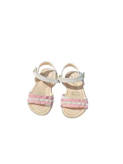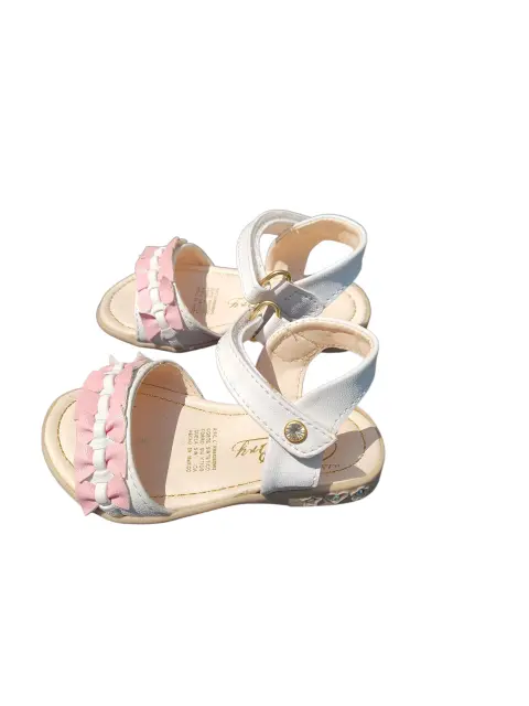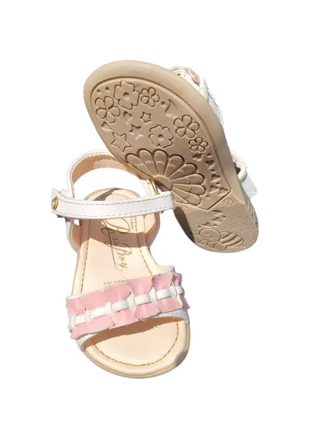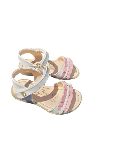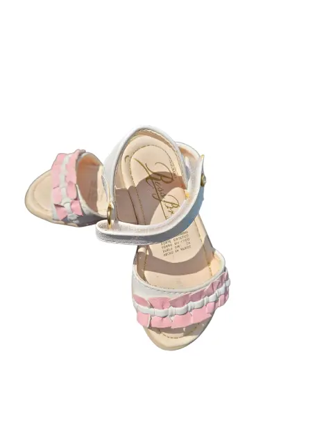 Sandalia Casual de Bebe Ross Bry, talla 13, colores Rosa y Blanco, detailes de pequeños cierre de pequeños moños al frente, cierre de velcro ajustable, plantilla semi-acolchada, suela sintetica antideslizante, hechos de materiales sinteticos, Nuevo a estrenar sin etiqueta en buen estado cosmetico.