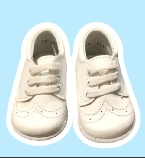 Zapatito tipo Botin para Bebe Poing, talla 10, color blanco con detalla engrabado al frente, cierre de agujetas blancas, hecho de material sintetico, nuevos a estrenar sin etiqueta en buen estado cosmetico