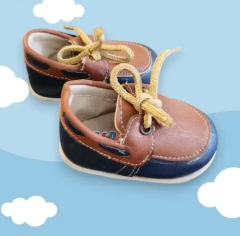 Zapatitos de bebe Nilu, talla 9, colores Azul Marino y Cafe, con agujetas, hechos de material sintetico, nuevos a estrenar sin etiqueta en buen estado cosmetico