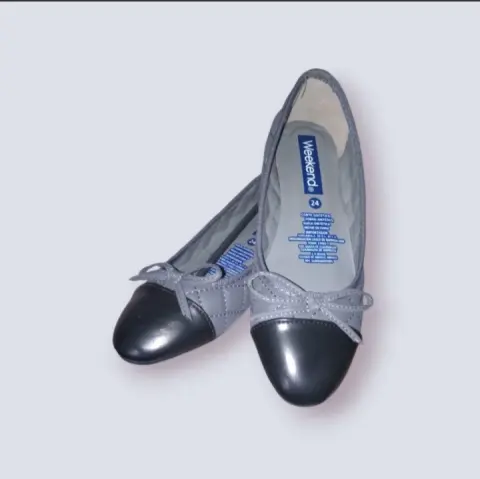 Zapatilla Clasica Flat Weekend, talla 4, color Azul Marino con moño y punta de almendra, plantilla suave acolchada, suela sintetica, hechas de material sintetico nuevas a estrenar con etiqueta en buen estado.