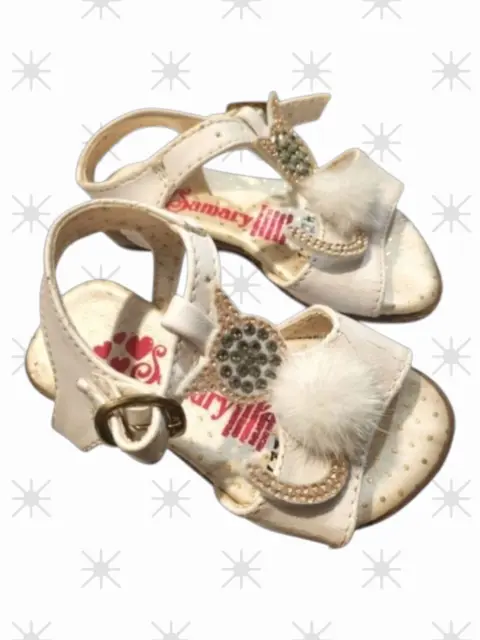 Huarachito Casual Samary, talla 13, color blanco con detalle de gatito y fur en la parte de entreated, plantilla semiacolchada, suela sintetica antideslisante, hechos de material sintetico, nuevos a estrenar sin etiqueta en buen estado cosmetico