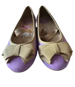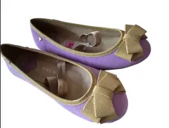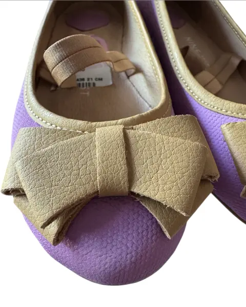 Zapatillas tipo ballerina para niña marca Nine West, nuevas con etiqueta. Combinan tonos lila y camello (color piel claro), con una tirita elástica que sujeta el pie para mayor comodidad. Suaves, elegantes y perfectas para cualquier ocasión.