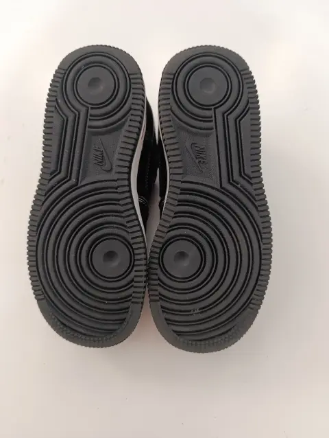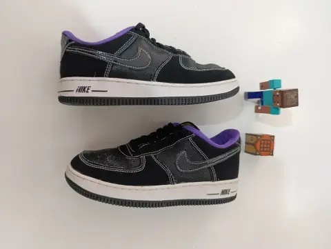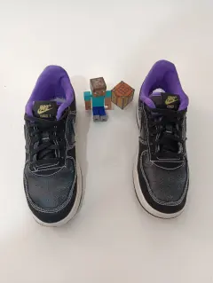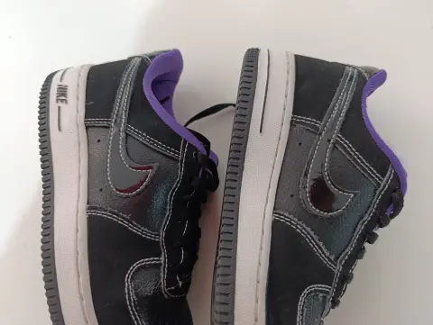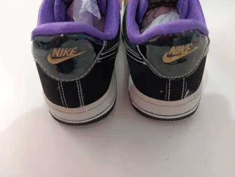 TENIS NIKE AIR FORCE. 🔸Modelo unisex, color negro con morado🔸decoraciones en charol🔸En excelente estado, sin detalles 🔸Talla: 20.5🔸Solo ya no tiene las plantillas Pero se pueden reponer fácilmente 😉