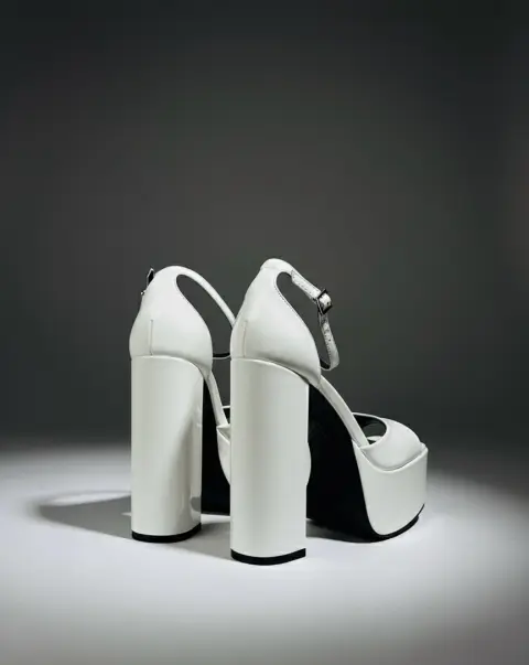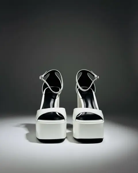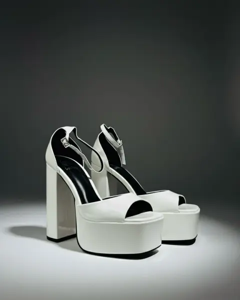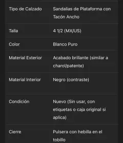 Sandalias de Plataforma Blancas. estas sandalias reflejan una luz que las hace irresistibles. Su diseño de plataforma ancha y tacón grueso no solo proporciona una estética vanguardista y retro-chic, sino que también ofrece una sorprendente comodidad y estabilidad, permitiéndote bailar, caminar y posar con total confianza durante horas.El cierre de pulsera en el tobillo no solo asegura un ajuste perfecto, sino que también añade un toque delicado y femenino al diseño.Talla 4 1/2 nuevas